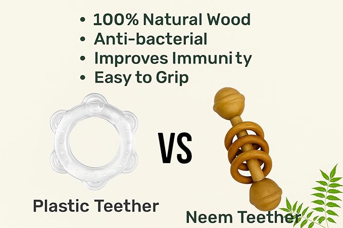 • Antibacterial & Immunity-Boosting – Neem wood’s natural antibacterial and antifungal properties help protect your baby while boosting immunity.