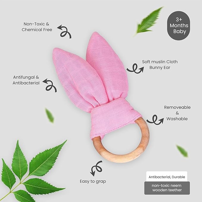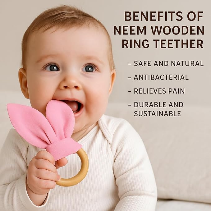 • Organic Neem Wood – Handcrafted from premium organic neem wood to ensure a safe, natural, and eco-friendly teething solution for your baby.